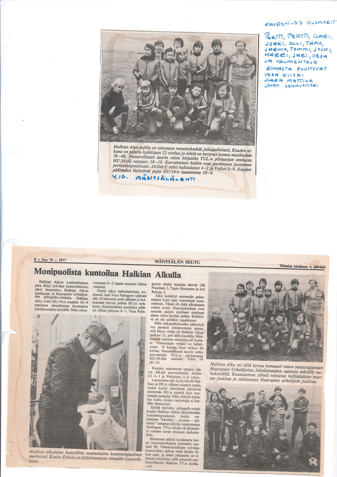 Toimintansa seura aloitti Laukkosken Taimen alajaostona kunnes 14.11.1924 halkialaiset perustivat oman Voimistelu- ja urheiluseuran Halkian Alku.